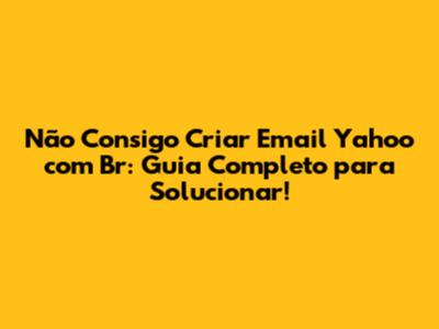 Não Consigo Criar Email Yahoo com Br: Guia Completo para Solucionar!
