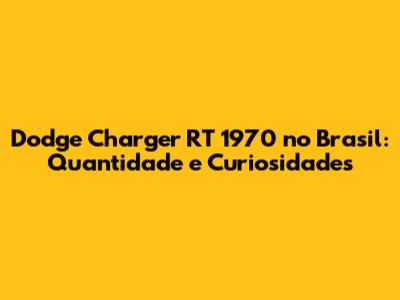 Diante de todas essas dificuldades, é impossível dar um número preciso de Chargers RT 1970 no Brasil. Mas podemos fazer algumas estimativas com base nas informações disponíveis.